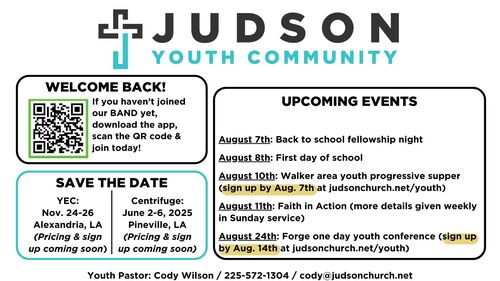 Women on Mission meet Sundays at 4pm in Room 220. The next meeting is August 18.