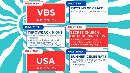 Youth Summer Schedule!