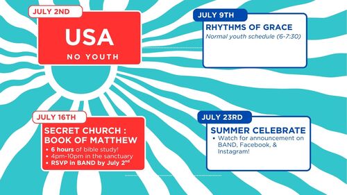 July 23-27. All online forms and final balance is due by June 29. If you would like to be a Centri-Kid Prayer Partner, talk to Robbie or Gayla.