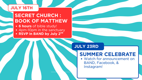 Youth: 4-10pm Secret Church for those RSVP.